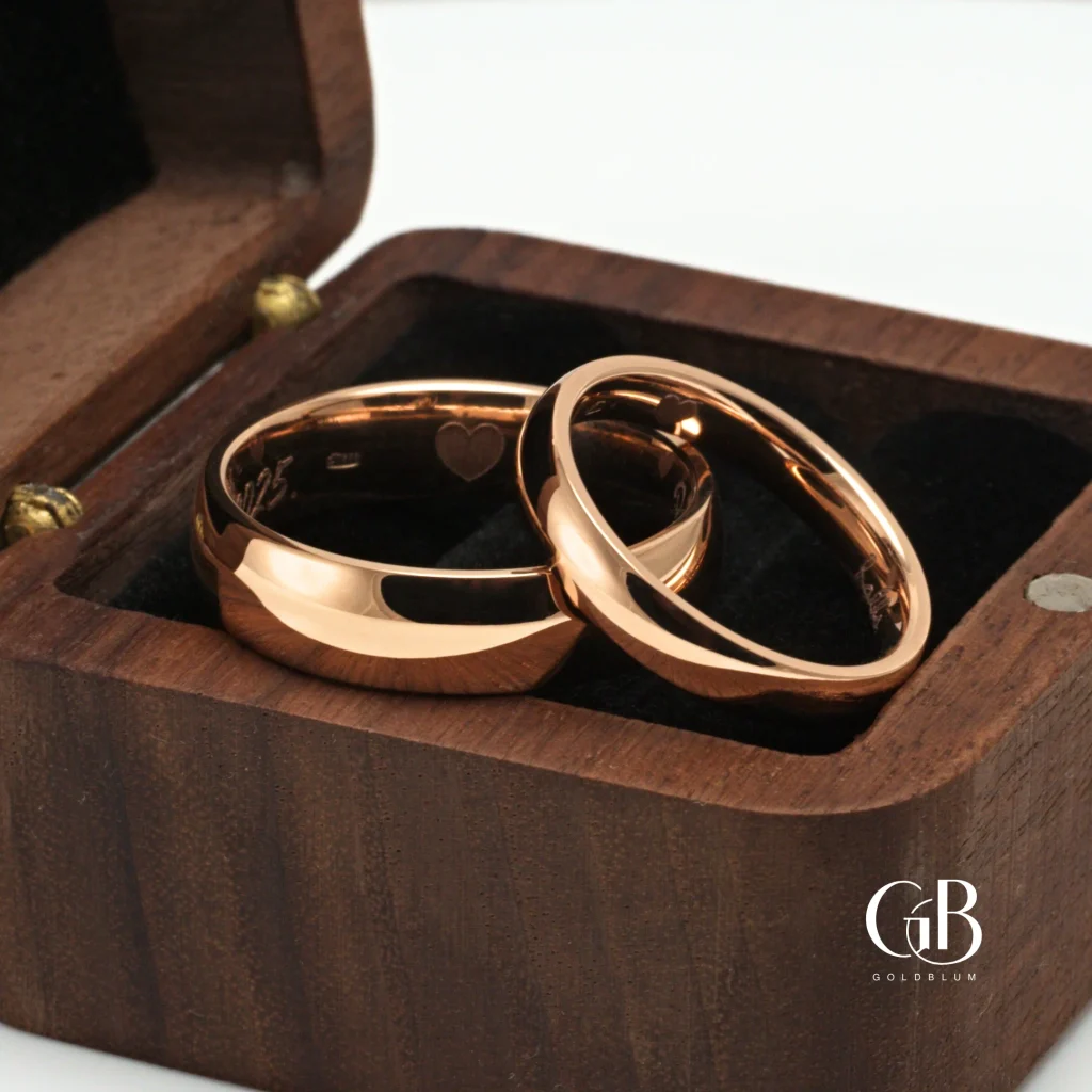 Pie izvēlētajiem platumiem: 3.5 mm un 6 mm, un noapaļota profila, gredzenu kopējais svars bija 15.09 grami zelta 585 provē. Pāra nodotais zelts ne tikai saglabāja emocionālo vērtību, bet arī praktiski gandrīz pilnībā sedza materiāla izmaksas – par materiālu piemaksājot vien nepilnus 100 EUR.