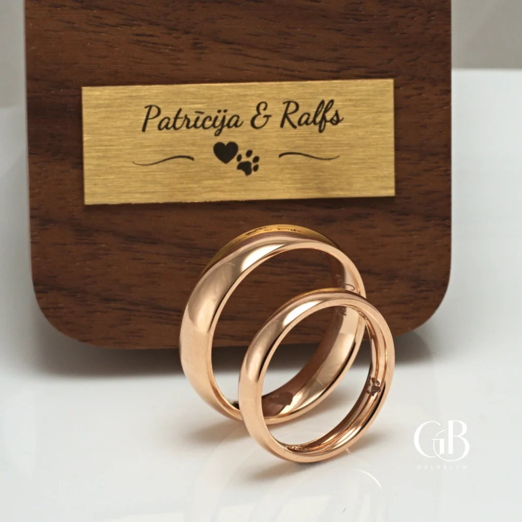 Patrīcija un Ralfs saviem laulības gredzeniem izvēlējās klasisku formu. Taču jau pašā sākumā bija skaidrs – viņi vēlas, lai gredzenos būtu kāda ļoti personiska detaļa. Pirmās sarunas laikā runājām par gravējumu un ideju iegravēt kaķa ķepiņas attēlu. Un tad radās jautājums: kāpēc gravēt tikai simbolisku zīmējumu, ja var mēģināt iegravēt viņu pašu kaķa īsto ķepas nospiedumu? Ideja “kaķa ķepas gravējums laulības gredzenos” šķita skaista, bet prasīja arī nelielu piedzīvojumu tās realizācijā. Kā mums tas izdevās? – lasiet tālāk.