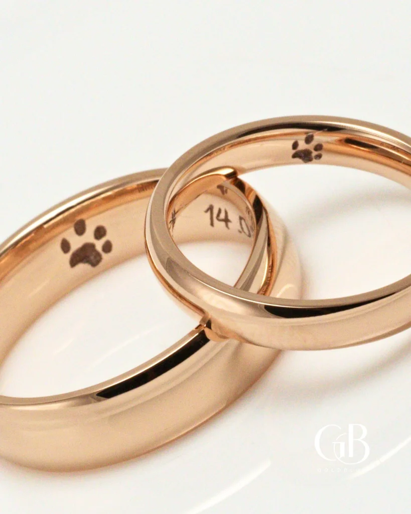 Patrīcija un Ralf – paldies jums abiem par uzticēšanos! Bija patiess prieks jūs satikt, sarunāties, smieties un kopā meklēt to vienu mazo detaļu, kas jūsu gredzenus padarītu patiesi “jūsu”. Jūsu kaķa ķepas nospieduma gravējuma ideja bija tik sirsnīga un personiska – tieši tādi stāsti mums atgādina, kāpēc darām šo darbu ar tādu mīlestību.