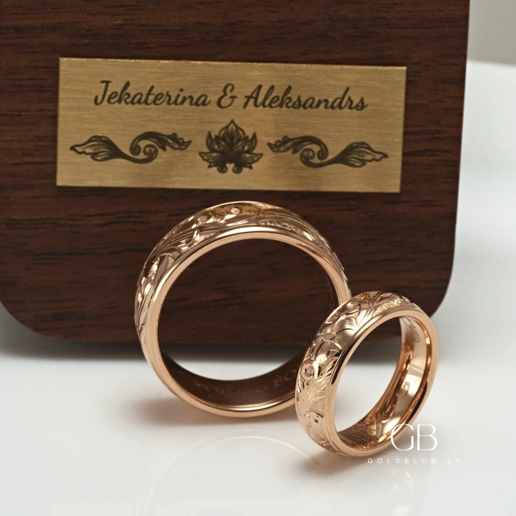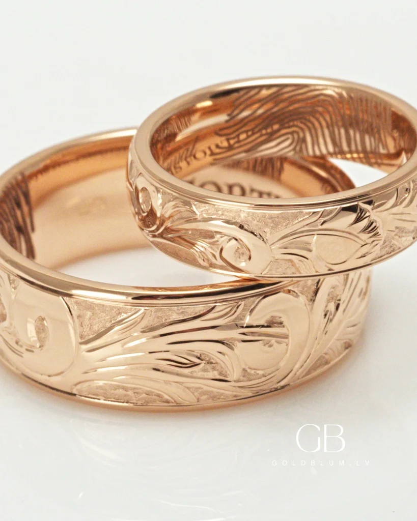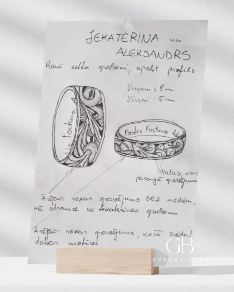 Jekaterina un Aleksandrs jau no paša sākuma zināja – klasiskie gredzeni nav viņu stāsts. Viņi vēlējās ko īpašu un neatkārtojamu. Daudzas dienas un nedēļas tika pavadītas Pinterest iedvesmas meklējumos, līdz pienāca brīdis meklēt juvelieri tepat Latvijā. Instagram bija daudz darbu, bet pārsvarā vienkārši – akmentiņš šur, neliels gravējums tur. Tad viņi uzgāja mūsu GoldBlum lapu, kur, kā paši saka, “katrs darbs bija viens par otru skaistāks.” Ārējie rokas gravējumi pārliecināja – mēs būsim viņu meistars. Neatkārtojami gredzeni – kā viņi tos ieguva? Turpiniet lasīt, lai uzzinātu.