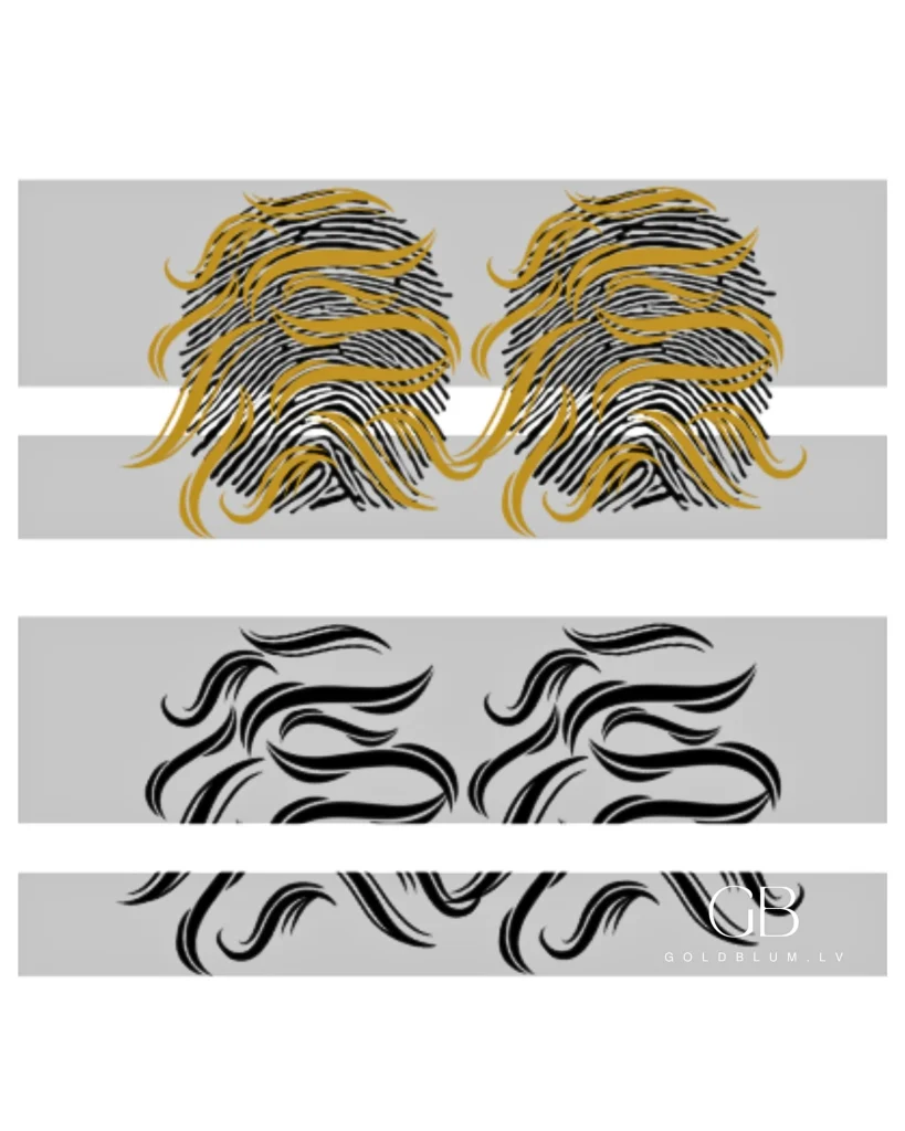 Darbu sākām ar maketa izveidi – uz pāra pirkstu nospiedumu pamata radījām plūstošu, unikālu rakstu. Tas kļuva par pamatu gredzenu ārējam dizainam. Lai rakstu pārnestu uz zelta virsmas, vispirms ar lāzeri izveidojām smalku trafaretu. Tas kalpoja kā ceļvedis, ļaujot rotzinim Mikum ar rokām precīzi izstrādāt katru līniju un saglabāt pirkstu nospiedumu rakstura nianses.