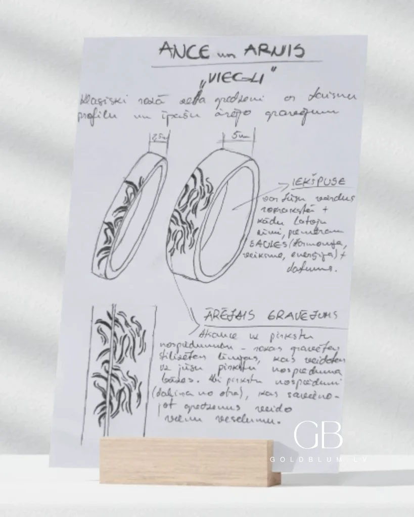 Ance un Arvi, no sirds paldies, ka ļāvāt mums būt daļai no jūsu stāsta. Jūsu gredzenu tapšanas process bija viegls un sirsnīgs; Bet rezultāts – neatkārtojams, gluži kā jūs paši. Lai jūsu gredzeni vienmēr nes līdzi jūsu mīlestības siltumu un spēku.